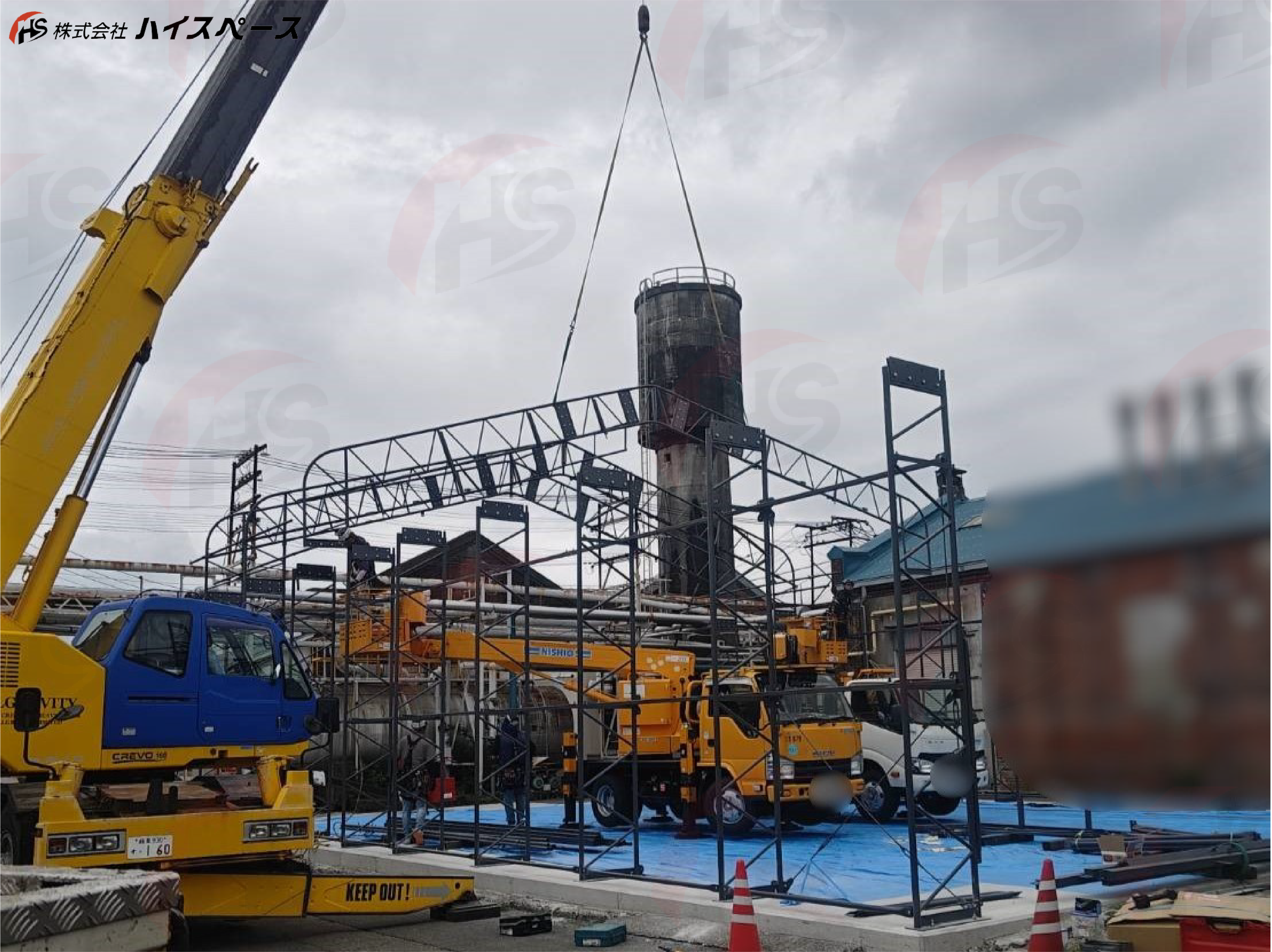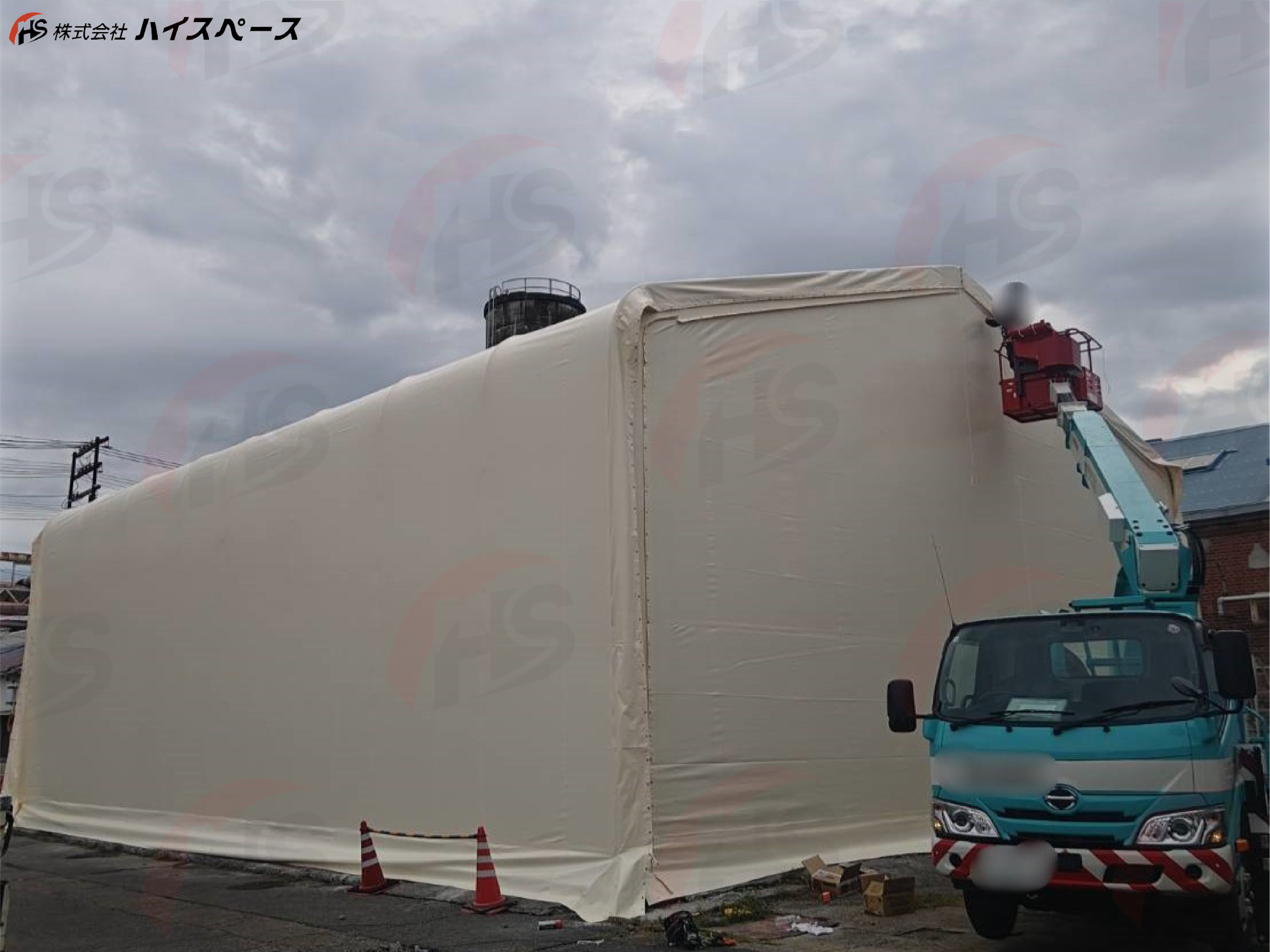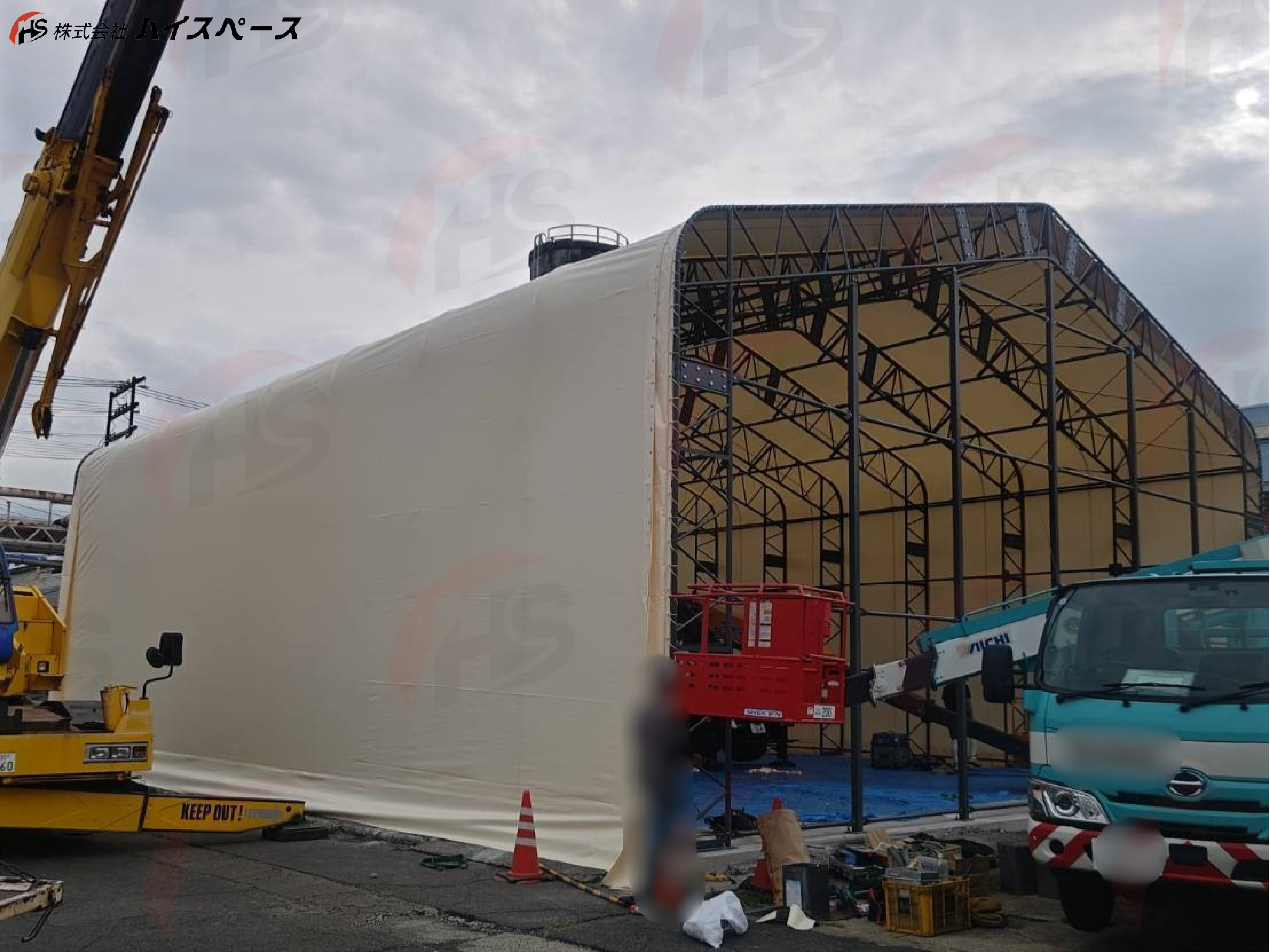 2025.12.01 京都府 テント倉庫が建つまでをご紹介!テント倉庫を建築しました! 建設の場所 京都府 種別 テント倉庫 サイズ 12.5×15.5×5 使用したテント生地 ウルトラマックス 京都府でテント倉庫を建築しました!今回はテント倉庫が完成するまでをご紹介いたします!まずは2枚目の写真のように骨組み(鉄骨)をセットアンカーに合わせて立ち上げ、梁をジョイントした後、生地をレッカーで乗せます。生地を基礎まで垂らして柱に括り付け、妻面に生地を貼れば後は開口部分を施工するだけです!他にもやらなければいけないことはありますが、今回はざっくりと紹介いたしました!テント倉庫、荷捌き場にお悩みの方はぜひ一度お問い合わせください!製造から施工まで一貫して弊社におまかせください!