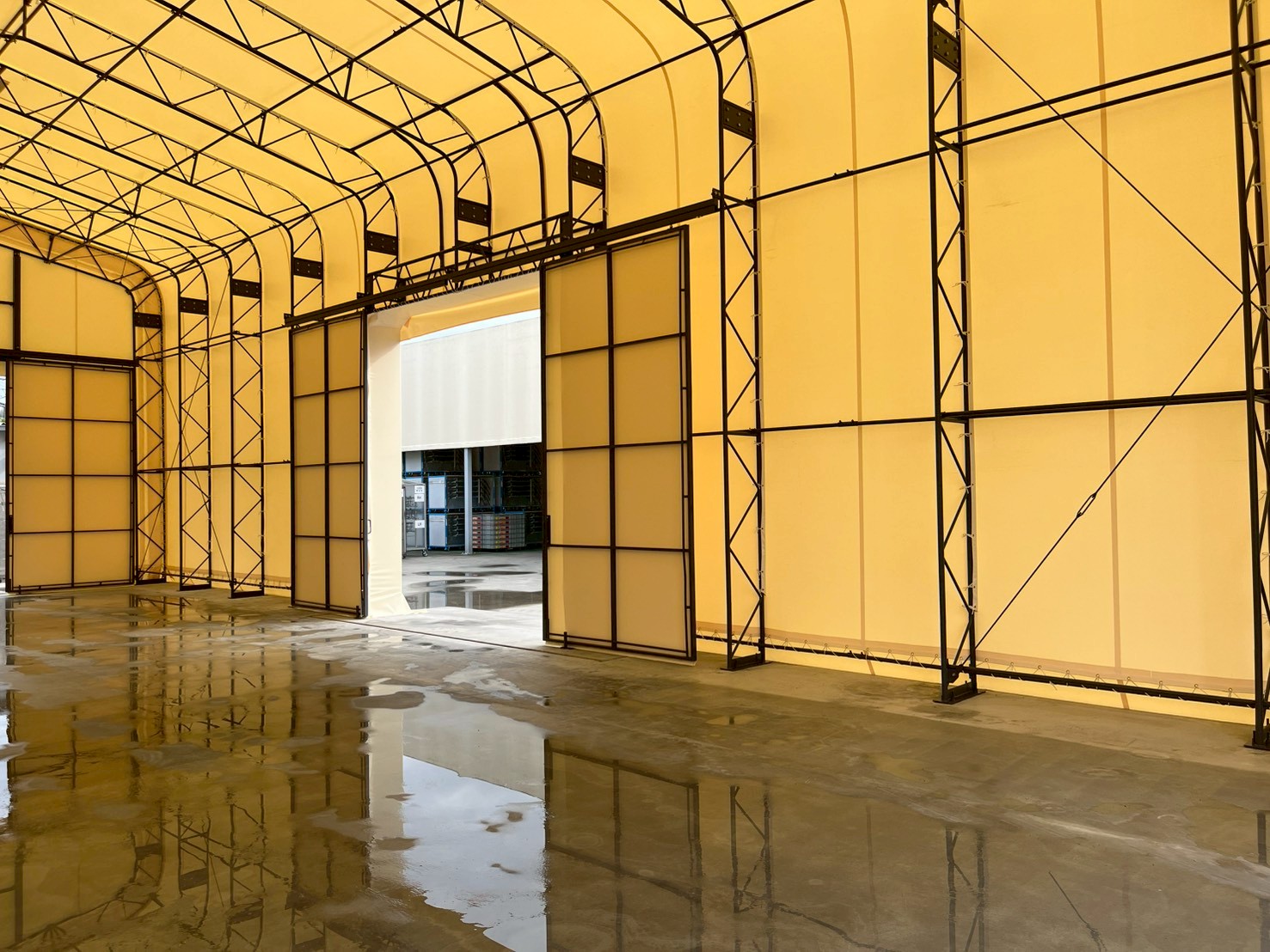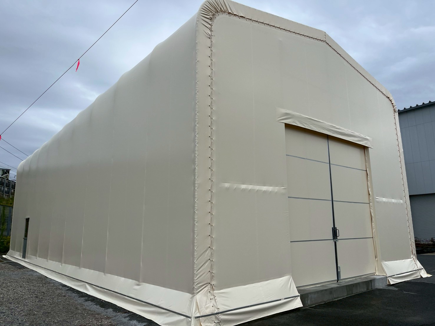 2025.11.13 大阪府 ベンチレーターで倉庫内快適!テント倉庫を建築しました! 建設の場所 大阪府 種別 テント倉庫 サイズ W8×L20×5 使用したテント生地 ウルトラマックス オプション ハンガー扉 サッシドア ベンチレーター 今回は大阪府でテント倉庫を建築しました。妻面だけでなく側面にも開口部があるため、保管物の出し入れが快適に行えます。天井にベンチレーターが3つ設置されているため、換気も出来、さらに防塵や結露対策もできます。テント倉庫を快適にするオプションはその他にもあります。まずはお気軽にお問合せください。ご要望に沿った提案をさせていただきます。